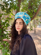 כובע שיק רקום פרחוני טורקיז