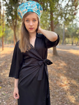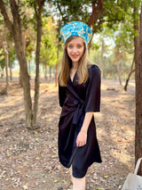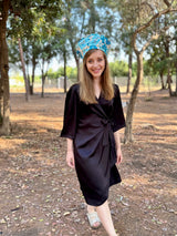 שמלה בגזרה נשית מחמיאה עם קשירה צדדית שמדגישה את קו המותן. עשויה מבד רך ונשפך, נעים למגע וקל ללבישה לאורך כל היום.