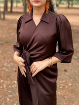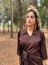 שמלה בגזרה נשית מחמיאה עם קשירה צדדית שמדגישה את קו המותן. עשויה מבד רך ונשפך, נעים למגע וקל ללבישה לאורך כל היום.