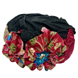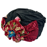 ברט מכווץ פרחים שחור בורדו רקום